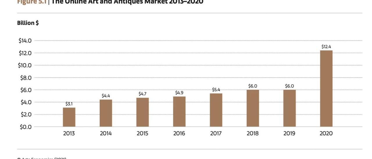 2013-2022年藝術品在線銷售額變化趨勢