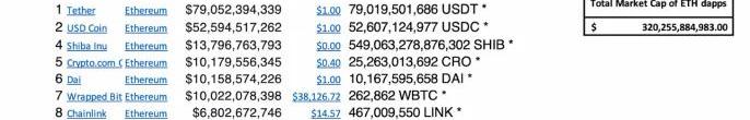 LedgerPrime的JoelJohn指出,當穩定幣等資本密集型用例出現時,胖協議理論的第一個裂縫就出現了。隨著像Tether這樣的穩定幣推動了ERC-20代幣的采用,ETH的市值并沒有像穩定幣的市值上升那樣成比例地上升,這表明協議/應用價值獲取之間的關系出現了根本性的斷裂。胖協議理論的主要證明方式是,我們應該預期以太坊上dapp的市值是以太坊本身市值的一小部分。而另一種情況可以被描述為"翻轉"。這種想法認為,dapp估值的暫時性投機泡沫可以存在,但必須從根本上恢復到低于ETH的市值。然而,自論文發表以來,我們已經看到了自2020年、2021年和2022年,ERC-20dapp層市值超過ETH市值的長期實例。