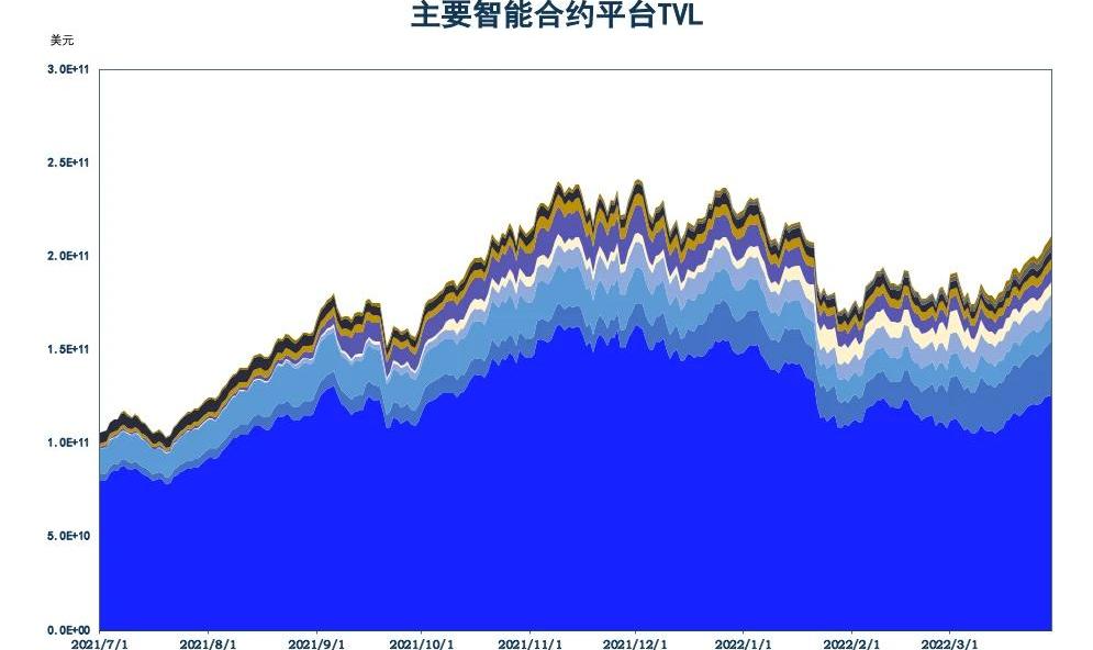 XRP/HKD-1.79%DeFi結束了通過分叉的形式粗獷地向其它智能合約平臺擴張的發展階段,大多數新出現的智能合約平臺在短暫的流動性挖礦熱潮之后被用戶所拋棄。在此階段值得關注的是,有一些賽道出現整體大幅上漲,有一些項目在自己的細分領域超越以太坊上原有的龍頭項目。公鏈TVL整體下滑:Terra、Cronos等逆勢增長