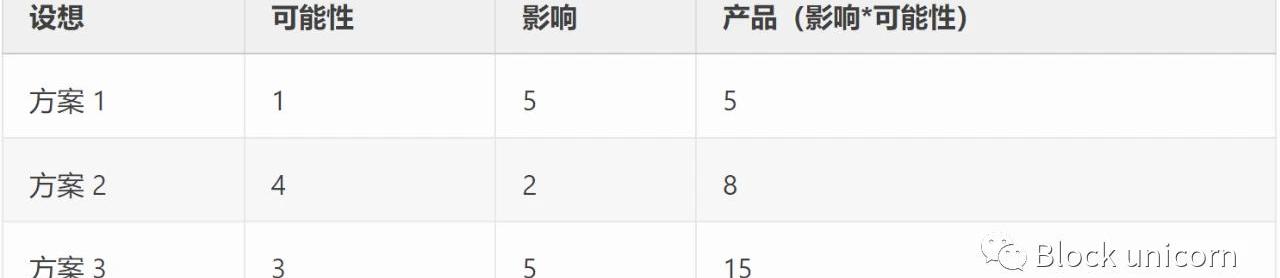 那么,我們如何評估這些情景呢?典型的風險分析策略是評估事件發生的可能性(1-極不可能,5-非常可能)以及影響(1-非常低,5-災難性)。需要關注的最重要風險是那些在兩個指標上得分都很高的風險,以影響和可能性的乘積為代表。