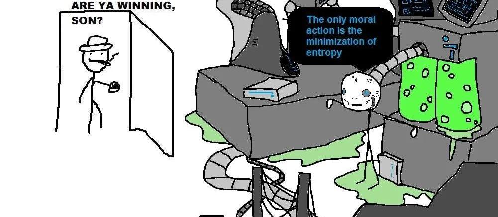 我糾結了半天要不要打碼。決定算了。。。注意細節,圖里這小哥頭上戴的很可能是OculusVR眼鏡。你問我怎么知道?因為這張圖曾經在2014年1月11日被水友貼在一個游戲論壇的OculusRift帖子下面。。。但這不是重點。重點是:這是一幅《現代啟示錄》。這位老豆看上去想要關心愛打游戲的兒子。但在他的腦袋里,游戲嘛,無非就是“輸”和“贏”之分。所以他才會毫不猶豫地推門問出那句:兒砸你贏了嗎?但有的“游戲”,確實沒有輸贏。。。比如。。。圖里這個。。。這時,你再看這張無厘頭的畫,粗糙到毫無美感的線條,其實是一面旗幟,它插在歷史分野的山脊上——從某一時刻起,有些人把自己的意義、生死、情愛統統遷移到了虛擬世界。而這位開朗的老父親顯然無法理解這一切。他們生活在同一個屋檐下,他們是兩個世界的人,并且可能*永遠*是兩個世界的人。看透這層魔幻的底色,大概就會悲從中來。