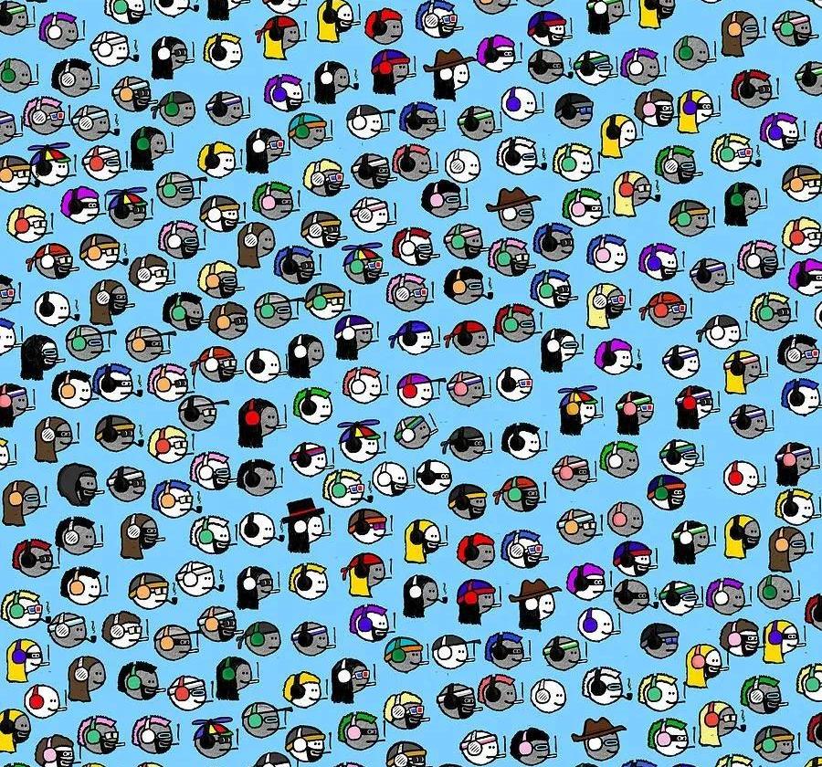 在小人的基礎上,他又畫了精巧的手表、帽子、衣服等等。然后用計算機把這些配飾,按照預設的稀有程度,自動分配到1萬個頭像上。這樣,就做出來1萬個看上去類似,卻各不相同的mfer。