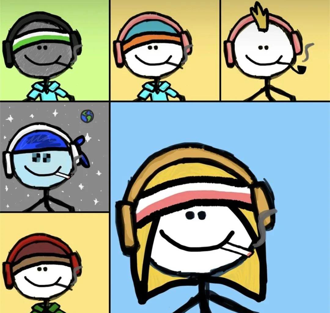 如此,再回看mfers,你就很容易理解。mfers畫的是一群坐在電腦前的普通人。雖然大多數人是小透明,有些還有點社恐,但他們內心強大,溫和而堅定地相信“一個人不應以任何理由高于另一個人”。他們的國度里沒有國王。