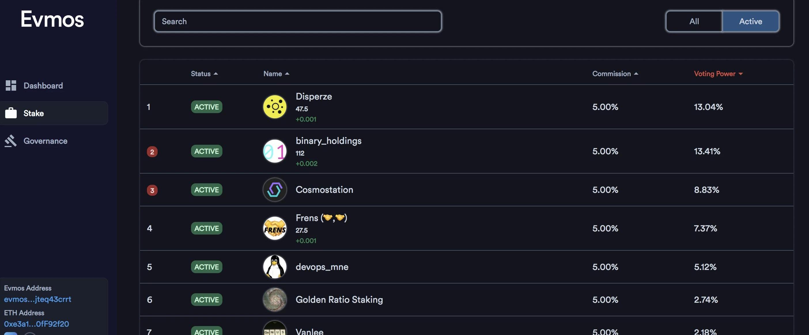 然后選擇配置好的Evmos(Beta),并輸入剛才復制并保存的Evmos地址。