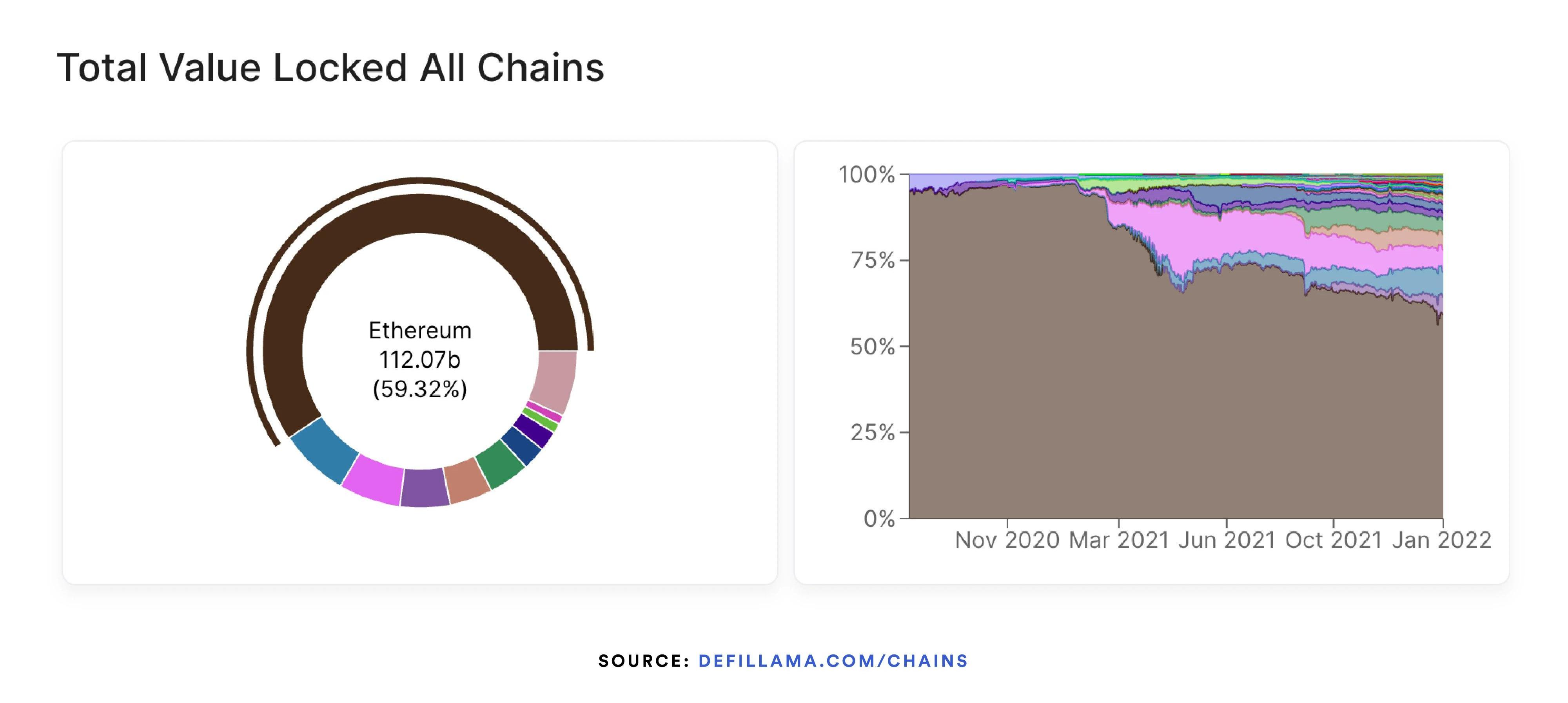之前,大部分智能合約應用都部署在以太坊主網上,因為以太坊是第一個支持完全可編程智能合約的網絡。以太坊之所以能夠成為主流的智能合約網絡,不僅因為它具有先發優勢,還因為它創建了不斷增長的網絡效應、去中心化的基礎架構、成熟的開發工具以及龐大的Solidity開發者社區。然而,隨著用戶對以太坊智能合約的需求不斷上升,以太坊區塊空間出現供不應求的狀況,這也導致了以太坊網絡的交易費一路飆升。雖然以太坊主網仍然是部署智能合約最安全的選擇,但許多終端用戶也開始尋求更加低成本的替代方案。因此,過去一年中有越來越多的智能合約開始部署在其他layer1區塊鏈、側鏈以及layer2rollup上,以此來滿足用戶和開發者的需求。多鏈生態在過去只是一個概念,而現在則變成了現實。目前,DeFi應用所部署的區塊鏈愈發多元化,這也很好地證明了這一點。此外,日活錢包地址、交易次數以及網絡貸款金額等各種鏈上衡量指標也無疑證明了多鏈生態正在蓬勃發展。
