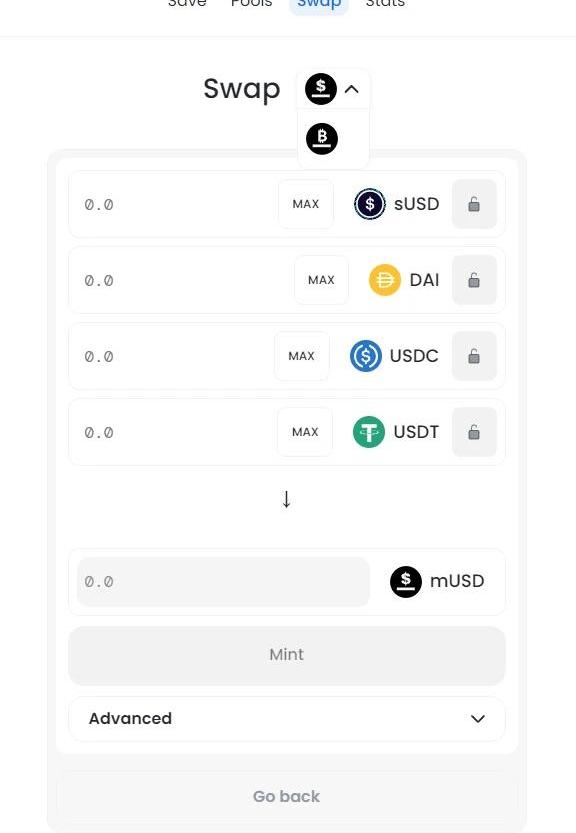 mStable是基于以太坊的穩定幣聚合協議,通過智能合約將一攬子底層資產bAsset按照一定權重鑄造出mAsset。目前可鑄造的資產有以美元為錨定的mUSD,和以BTC為錨定的mBTC。mStable為解決以下3個問題:錨定相同資產的token過于繁雜,用戶門檻高、體驗差如文章開頭,想要解決在不同協議使用錨定相同的資產卻要不斷互相轉換的問題。資產缺乏收益通過Save的功能增加用戶收益,進行質押可額外獲得MTA獎勵或其他平臺token獎勵。缺乏對錨定資產永久損失的保護相比于單一的穩定幣,mUSD由多種穩定幣按份額而成,會分散其中一種穩定幣發生極端風險造成的損失。MTA在發生脫錨時還會啟動保護機制重新錨定美元。mStable通過Save、Pools和Swap3個板塊提供以上問題的一站式解決方案。1.Save用戶將mUSD或mBTC存入后可以獲得利息。近90天穩定幣的APY最高達44%,最低為4%。利息的主要來源為通過如Compound或Aave這些借貸協議獲得,以及用戶在平臺兌換和贖回的費用。用戶對mUSD的存儲有10種不同token可選擇,同理對mBTC的存儲支持7種token。用戶存入非mAsset的資產后協議可直接鑄造或通過兌換成mUSD/mBTC。存入后用戶將獲得imUSD/imBTC的憑證,用戶也可以直接將資產存入Vault中獲得協議的token獎勵MTA。2.Pools用戶為mStable的池子提供流動性,可以賺取swap的費用。直接存入到Vault中還能獲得MTA獎勵,?的MTA可以立即獲得,剩余?在26周后按線性解鎖。流動性提供者可通過質押MTA最高提升3倍收益。目前的獎勵APY最高達41.3%,但大多數池子的流動性都不到300萬美元。由于mStable池子幣對的兩個資產都是錨定美元穩定幣或BTC,使得池子基本不會產生無常損失風險。3.Swap在Swap里用戶可以直接在錨定相同資產的token之間快速兌換、鑄造或贖回mAssets。mStable支持4種資產直接鑄造為mUSD,支持3種資產直接鑄造為mBTC,鑄造和贖回的價格由公式預先設定。價格會考慮資產在籃子中的權重,權重越低鑄造出的mAssets越多,這種設置可以給用戶帶來套利的機會。