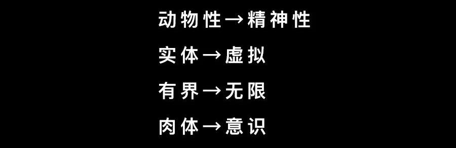 從動物性過渡到精神性,從實體到虛擬,從有界到無限,從肉體過渡到意識,這是一個全面的數字化改造過程,這就是數字人。
