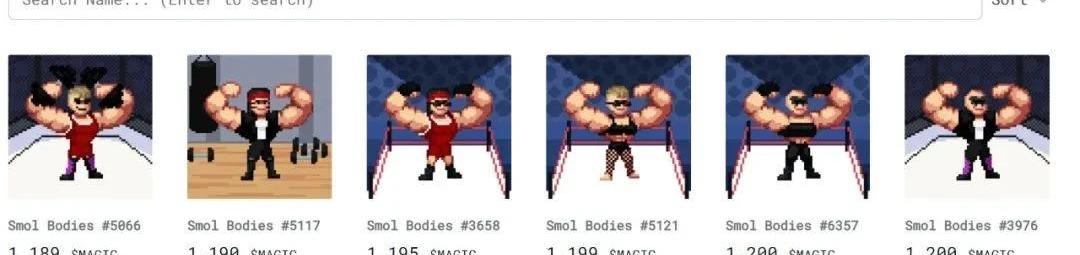 那么是否能繞過Opensea而進行差異化競爭呢?這里有幾種新穎的思路可供參考。第一種思路是細分NFT交易市場。如果把Opensea比作是“淘寶”,那么類似于“唯品會”或者“得物”這樣的市場會出現嗎?其實,現階段已經有類似的產品或者雛形出現了。針對于游戲道具NFT,目前大型鏈游基本上配備有自己的交易市場,而小型鏈游則聚集在不同游戲生態上,比如Gala、TreasureDAO、IMX生態。以TreasureDAO為例,TreasureDAO是一個去中心化NFT生態系統,建立在以太的二層鏈Arbitrium上,目標是將NFT、Defi、Gamefi三者融合起來,為眾多封閉的NFT提供橋梁,連接到游戲和元宇宙。TreasureDAO的NFT市場從上架自家BridgeWorld游戲道具以外,逐漸集成了Smolbrains、Body、SeesofLife等外部Defi類的小游戲。$MAGIC作為生態系統的通證將貫穿在Treasure市場上的每個項目中。值得注意的是,TreasureDAO上的游戲道具都保持一致的像素風畫風,未來統一畫風的游戲生態將成為趨勢。