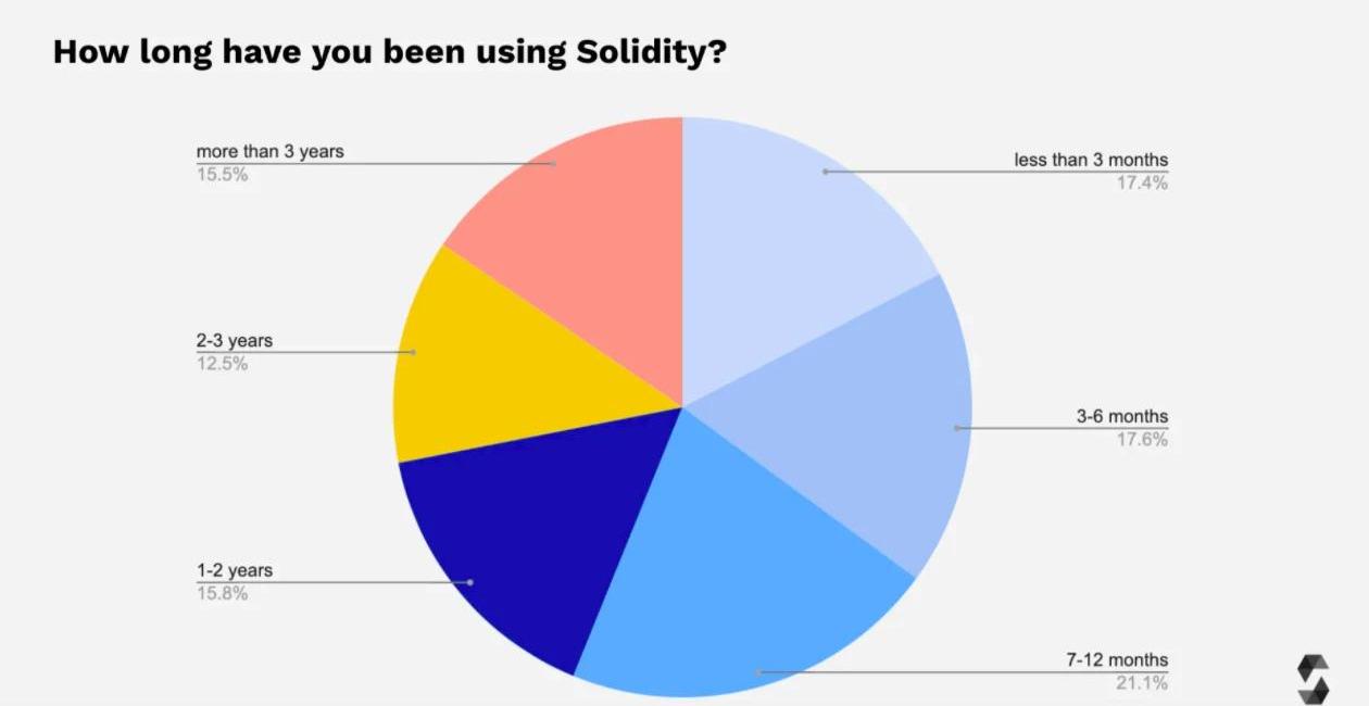 大多數受訪者認為自己是Solidity專家,他們的專業知識自我評價為7或更高。4.2%的人將他們的專業知識評為10,大約23%可以被認為是初學者或自評專業水平為4或更低的低頻用戶。