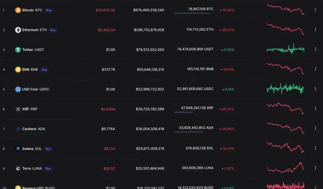 危機爆發,俄羅斯進攻烏克蘭對全球經濟產生了巨大影響。傳統行業和加密貨幣行業都受到了新戰爭陰云的影響。下圖顯示了過去一周加密貨幣的下跌趨勢。