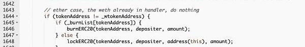 一般來說deposit()用于ERC20代幣的存款,depositETH()用于WETH/WBNB代幣的存款。Bridge合約提供了兩個方法:deposit()和depositETH()。然而,這兩個方法造成了相同事件,并且deposit()函數并沒有阻止WETH/WBNB的存款交易,因為deposit()沒有燒毀或鎖定WETH/WBNB。黑客通過使用deposit()來制作假的存款事件,在沒有任何真實存款的情況下,將WETH/WBNB存入。