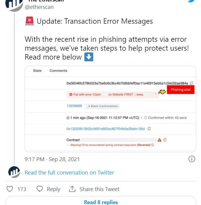 升級:交易錯誤信息展示最近利用錯誤網站進行釣魚攻擊的問題頻發,我們已經采取措施來保護用戶安全!點擊下方閱讀詳細內容Solidity自定義錯誤信息隨即出現,沒過多久,我們在10月也發布了更新版本。
