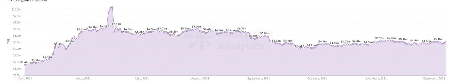 Polygon雄心勃勃的設計架構有許多顯著的優勢,致使其成為目前最具吸引力的以太坊擴展平臺之一。根據FootprintAnalytics,目前Polygon上的TVL超過51億美元,交易量約為42億美元。