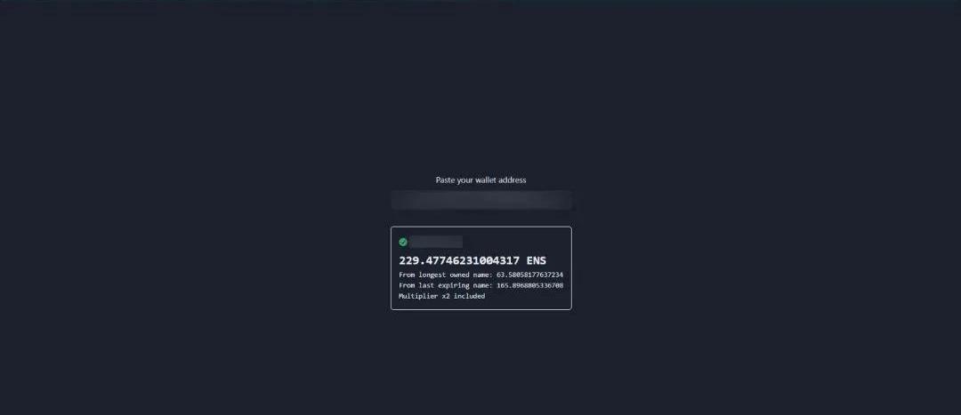 如果您曾經擁有ENS名稱,您就有資格獲得$ENS治理代幣。領取將于2021年11月8日開始,持續到2022年5月4日,之后任何剩余代幣將被發送到DAO金庫。ENS代幣合約為0xC18360217D8F7Ab5e7c516566761Ea12Ce7F9D72總共將有1億美元的ENS代幣,分配如下:25%空投給.ETH持有者25%給ENS貢獻者50%給DAO社區國庫基于截至2021年10月31日的地址過去注冊和未來注冊的總時間,當前或曾經是.ETH二級域名注冊人的賬戶級別上的所有地址。代幣分配公式考慮以下因素:.ETH地址有多長時間當前的到期日期設置了主ENS(以前稱為反向記錄)的用戶可以得到2倍乘數。在進行這個過程之前,建議快速檢查一下是否有資格使用這個社區制作的工具進行領取。只需在搜索欄粘貼你的地址,它就會顯示潛在領取。
