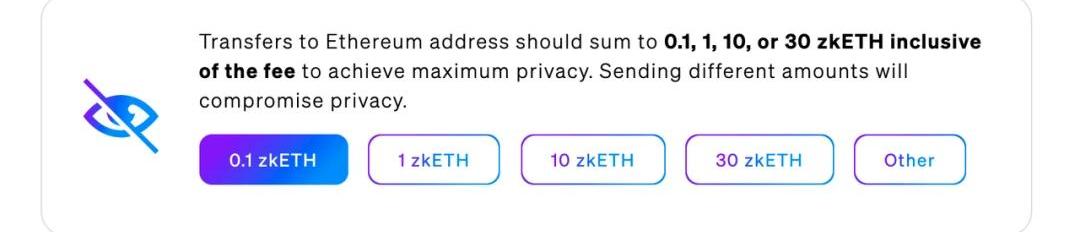 基于我們在Discord頻道中收集的常見反饋,我們已經對在zk.money上給L1發賬的功能做了一些調整。Aztec網絡有內部交易,所以發往L1的解蔽交易的隱私集,就是隱蔽交易的集合,也是解蔽交易的來源。為便利用戶操作,現在用戶會被解蔽到便利的隱私集中——可以使用任意數額,但隱私性可能下降。