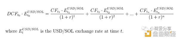 因為公司未來的現金流與其股價以相同的貨幣(例如美元)計價。但 Solana 和 ETH 的未來現金流是以 SOL 和 ETH 為單位,而不是以美元為單位。因此,你需要對未來每個時期的匯率做出假設,以得出以美元計價的DCF。