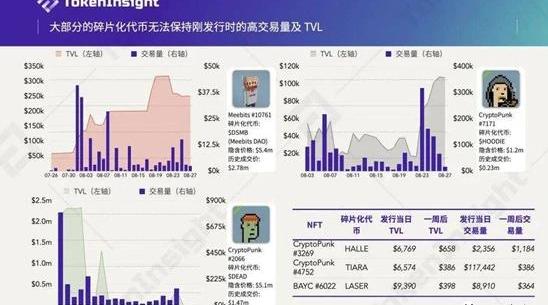 雖然Loot的推出令人興奮,自下而上的去中心化式的文化創造給予了NFT更多的內涵,但是市場主流,也就是我們似乎已經默認了NFT與藝術品收藏品等模式的綁定關系,導致NFT在發展中循規蹈矩,大多數NFT項目都在Cryptokitties的基礎上進行創新。正如來自DEGOChina的黑鳯李所言:加密貓的成功和當時的火爆讓很多人有了思維定勢,認定藝術品就是NFT發展的正確道路,自然而然地把NFT和藝術、收藏品、卡牌、稀缺性綁定在了一起。他認為,NFT的價值并非取決于NFT本身,應用場景將會賦能NFT價值,NFT價值可以重新被定義。因此,如何構建能夠賦能NFT的去中心化應用程序最為關鍵。目前,很多協議的開發者都把NFT的流動性看作是推動NFT邊界擴張的原動力,并且正在一步步嘗試解決此方面的問題。NFT碎片化協議的出現便是體現,NFT碎片化協議是在原有的思維下對NFT流動性的一次擴容。Fractional.art是一個搭建在以太坊上的NFT碎片化協議。我們可以將自己的NFT鎖進智能合約,并鑄造發行相應的ERC-20Token。它可以在一定程度上降低我們參與NFT市場的門檻。不過,據Tokeninsight數據統計,大部分的碎片化代幣無法保持剛發行時的高交易量及TVL。
