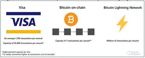 圖12 - 比特幣鏈上每秒交易vs. Visa每秒交易vs.閃電網絡