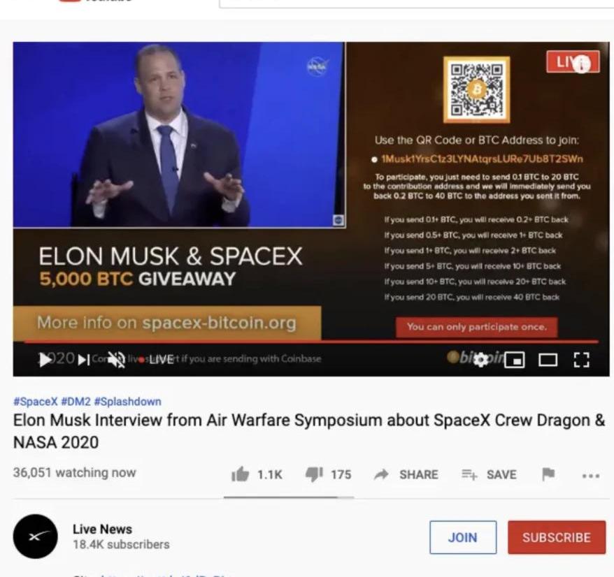 來源:https://twitter.com/DeFi_Dad/status/13480078008117780499/虛假的NFT賣家。可能以后會看到很多這樣的詐騙方式,人們抄襲其他人的藝術或NFT項目,在區塊鏈上獲得驗證之后就出售它們。已經有假冒的Metakey和Akira等等的賣家了。大家要注意了,如果不是項目方、創作者、藝術家自己發售的作品,是沒有價值的。10/加密貨幣交易所的賬號被盜。這個可憐的小伙子賬號被盜了…Sim轉賬并且郵箱被黑了,因此黑客就有他的電話號碼來進行2FA驗證,然后通過電子郵件確認交易。通過手機號碼進行2FA驗證存在安全風險。11/YouTube頻道被黑然后開始贈品直播,這種詐騙方式太常見了。黑客會盜竊一些出名的YouTube賬號,然后做一些與區塊鏈相關的贈品直播。似乎這種騙局很老套,但總有新的羊毛會中招。