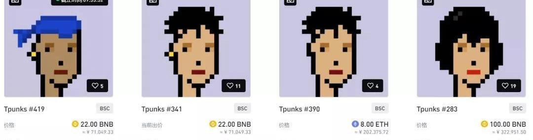 作為Tpunks戰略合作伙伴的APENFT,此前白話對APENFT的報道提到過,被稱作是NFT領域的ARK方舟明星基金的APENFT,通過將全球頂級藝術品的NFT化與區塊鏈化、搭建全球頂級藝術家與區塊鏈的橋梁,給加密領域帶來了真實的價值支撐。近期我們看到的消息:9月2日,APENFT與Tpunks達成戰略合作9月3日,由APENFT基金會和Tpunks聯合推出的NFT頭像售賣活動,在BinanceNFTMarketPlace正式開啟。在這里,將有50枚Tpunks頭像被出售,其中40枚將被直接出售,最低價格為6BNB,剩余10枚通過拍賣售出,起拍價為2BNB