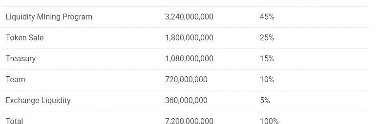 總量和供給Benqi的治理代幣QI總量為72億枚,其中45%用于流動性挖礦,具體分配比率如下: