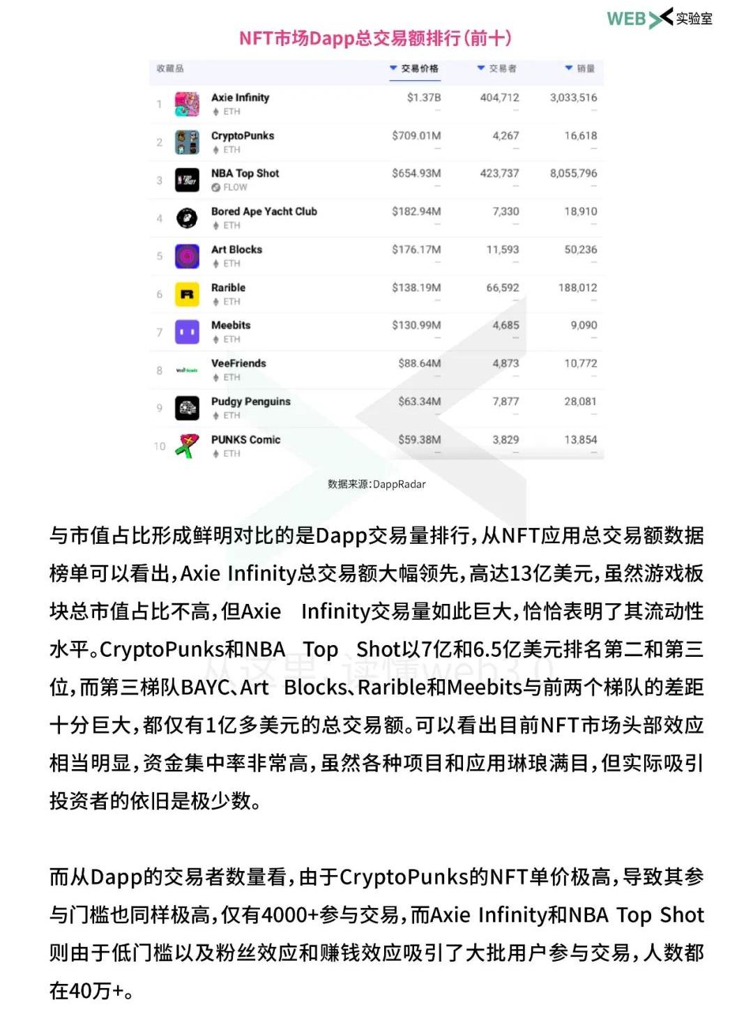 XRP/HKD-4.52%NFT為加密世界帶來了稀缺性和多樣性,同時也帶來了新的泡沫,但NFT的火熱的確為區塊鏈帶來了嶄新的玩兒法和應用場景。目前的NFT的稀缺性都是人為創造的,而真正能將一件事物推價值向高峰的,一定是極高的使用價值加上自然形成的稀缺性,兩者混合創造出“有價值的稀缺品”。NFT的廣泛應用也撬動了加密市場多年空轉的經濟體系,給區塊鏈帶來了另一種形式的價值,讓區塊鏈從一個純理性的金融系統向感性和主觀的人文世界靠攏。NFT的用例多集中于游戲、藝術品、元宇宙、版權、社交等領域,元宇宙可能是NFT目前最火熱也是最宏大的應用場景,元宇宙內需要承載用戶數字資產和個人數據的可靠載體和穩定公平的經濟系統,這便是NFT預想中的用武之地。目前頭部項目的NFT價值密度很高,其余復雜應用雖然遍地開花,但體量非常小,可能還需要經歷幾輪洗禮和淘汰。而未來NFT與DeFi和CeFi經濟系統的大規模交互可能引爆下一輪熱點。