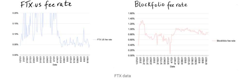 值得注意的是,FTX.us的手續費通常是這一數據的5-10倍,約為0.2%。Blockfolio的手續費則更高,約為0.8%。這在一定程度上解釋了為什么看起來Blockfolio的收入占比高于其交易量占比。