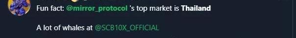 Mirror上的mAssets全天候交易,這意味著你可以在市場時間之外在平臺上交易合成股票。當預言機價格和市場價格出現分歧時,往往可以提供有趣的交易機會。Mirror出人意料的有機增長部分來自泰國,這是它最大的市場。