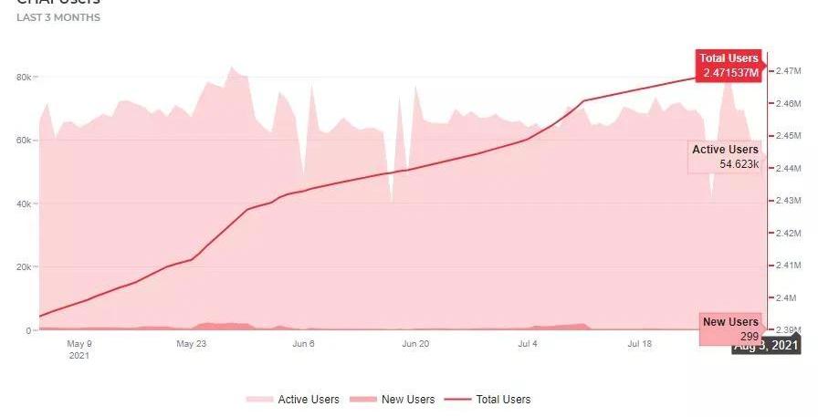 ChaiApp繼續以穩定的速度增加他們的總用戶,平均每天超過5萬用戶,總用戶數為247萬。數據來源:https://www.chaiscan.com/ChaiApp繼續以穩定的速度增加他們的總用戶,平均每天略高于5萬用戶,總用戶數為247萬,每年處理的交易量超過20億美元。就背景而言,Chai應用程序的用戶總數相當于韓國人口的5%左右。對于終端用戶,Chai還提供名為"boosts"的功能,這基本上是商家為在該應用程序上出現而支付的不同類型的促銷活動。客戶可以很容易地在他們感興趣的商家找到優惠,并點擊進去使用。截至2021年5月10日,在Chai整合了TerraStation移動網絡后,韓國用戶不再需要銀行賬戶來為他們的KRT存款充值。