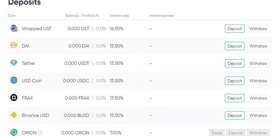 2.OrionMoneyOrionMoney的愿景是成為一個跨鏈的穩定幣銀行,提供無縫和無摩擦的穩定幣儲蓄、借貸和消費。在OrionMoney穩定幣銀行內,計劃有三個主要產品--OrionSaver、OrionYieldandInsurance和OrionPay。目前,你可以在以太坊網絡上存入大量的穩定幣,以獲取Anchor的收益率。