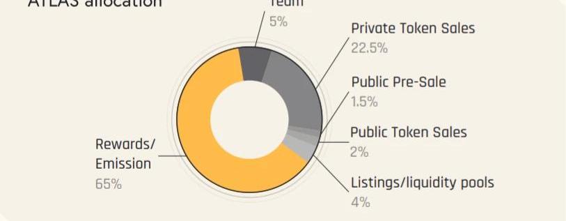 官方網站:https://staratlas.com/overview游戲種類:射擊類游戲、ARPG游戲標簽:3A、虛擬引擎、星戰類對標游戲:星際公民、EVEonline游戲內容:游戲中存在三個星系派系,分別為由人類統治的MUD領土、外星種族聯盟的ONI區域、由機器人控制的Ustur星區,每一派系將劃分為三部分,分別是安全區,中層區域,和邊界。玩家可以根據喜好自由選擇四種不同方向的職業類型,分別為殺手,成就者,探索者,社交者;游戲中將會鼓勵玩家創建團隊和太空城市,整合資源以獲得競爭優勢,POLIS代幣將會發揮治理的重要作用。根據船只的大小將會分為初級、小、中、大、首都、指揮官、無畏共七級戰艦,每一種戰艦將會擁有不同類型或屬性的細分方向。且玩家可以親身駕駛飛船駛入太空,體驗身臨其境的感覺。代幣經濟:游戲內擁有兩種代幣,分別為:ATLAS,共計360億枚,作為游戲內代幣,可用于購買飛船、船員、土地和設備,持有ATLAS購買飛船或組件時將獲得6折優惠;POLIS,共計3.6億枚,可以通過參加議會的方式制定規則和法律,持有POLIS購買土地和艦隊時可以獲得6折優惠。ATLAS分配方式:
