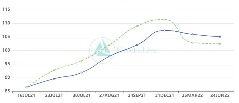 播報數據由Greeks.live格致數據實驗室和Deribit官網提供。市場繼續維持震蕩態勢,交割日沒有大行情以及交割后小幅拉升的規律再現,伴隨著震蕩而來的,是整個市場的IV下降。各期限IV持續的小幅下降,形似3月行情。期權成交量2.6億美元,期權持倉量為44億美元。10d58%30d94%90d96%1Y76%各標準化期限隱含波動率:今日:1m81%,3m87%,6m90%,DVol92%7/9:1m84%,3m90%,6m91%,DVol94%市場繼續維持震蕩態勢,交割日沒有大行情以及交割后小幅拉升的規律再現,昨日比特幣觸及32000美元的支撐后反彈回34000美元。伴隨著震蕩而來的,是整個市場的IV下降。各期限持續的小幅下降,形似3月行情。