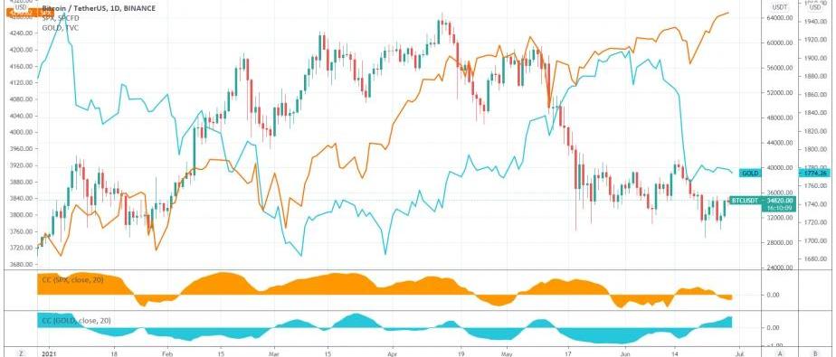 BTC&SPX&Gold的價格走勢以及相關性從上圖可知,今年上半年,在價格走勢相關性方面:?比特幣和SPX500總體上屬于正相關,且大部分時間段為強正相關;?而比特幣和黃金總體上偏向負相關。總體上,比特幣和美股行情走勢差不多,即使是將時間往回拉長到2020年,也是如此,兩個都是經歷了由于疫情恐慌導致的深V大暴跌,幣圈的黑色312,美股的活久見連續跌停。這其中有意思的是,在全球資產大放水的大環境下,黃金作為對沖通脹的傳統儲值資產,今年的價格收益表現并不好看,今年上半年整體的趨勢基調都是下行趨勢,我們具體看看三者上半年在價格表現方面的具體數據:?比特幣:21%;?SPX:14%;?Gold:-7%;可見,盡管今年4月中旬后,幣圈市場出現了大幅回調,但是比特幣今年上半年的價格表現依舊優于SPX,完勝黃金。這或許也能夠說明,市場上那些出于對沖通脹的資金已經逐漸從傳統的黃金市場流出,轉而流入比特幣這個新興市場。對沖基金大佬保羅·都鐸·瓊斯、投資女皇凱瑟琳·伍德、橋水基金創始人達里奧等傳統投資大佬對比特幣的喜愛只是開始,未來已來,只是尚未流行。ETH&DeFi