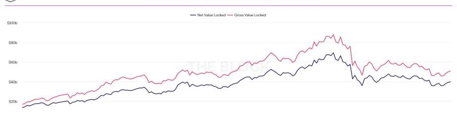 鎖倉量是衡量DeFi生態規模的重要指標之一,通過計算所有鎖定在DeFi協議智能合約中的ETH及各類ERC-20代幣的總價值之和而得到。根據TheBlock的數據統計,2021年上半年以太坊DeFi生態的凈鎖倉量大約從137億美元最高增長到約694億美元,最高漲幅約500%;隨后由于行情的下跌,凈鎖倉量逐漸下滑,截至6月30日凈鎖倉量約為400億美元,凈鎖倉量回撤了約42%。不過總體來看,2021年上半年凈鎖倉量還是增長了約192%。