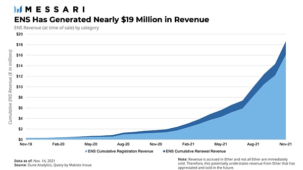 上圖:ENS 協議累計已經產生了接近 1900 萬美元的收入。
