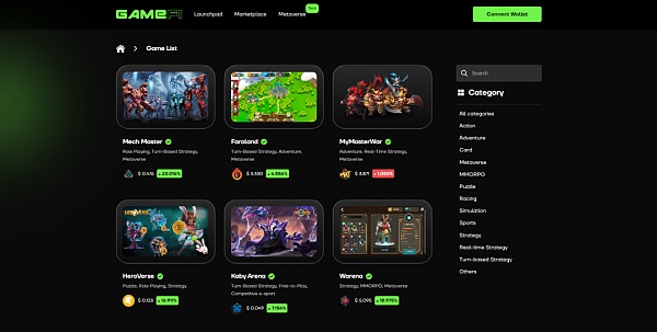 GameFi 聚合器是游戲相關內容的平臺,使玩家可以通過多個區塊鏈網絡探索現有的和即將到來的游戲。聚合器還允許玩家管理游戲內的 NFTs、追蹤收益,以及演示迷你游戲。其理念是為所有代幣、游戲發布、推廣等創造一個一站式商店。如果這一切都成功了,聚合器將有機會從游戲擴展到其他 NFTs 領域,如藝術收藏品和音樂版稅。