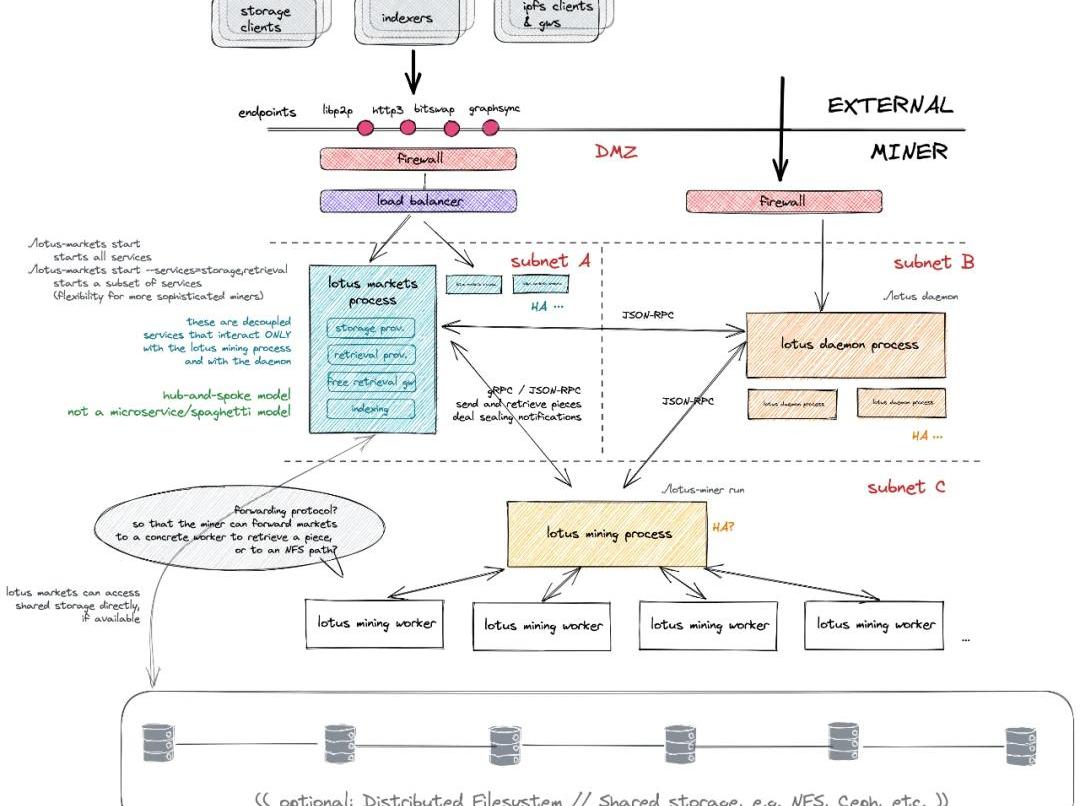 使用這種初始分類,是邁向模塊化Miner架構的第一步,解決了單一架構的缺點:將LotusMiner流程分為1)Lotus市場流程2)其他LotusMiner流程。通過分離市場和mining,Lotus節點的架構對于礦工來說變得更加聚焦于功能,使他們能夠將自己的職責與最適合他們的能力以及他們對網絡的經濟偏好的責任保持一致。