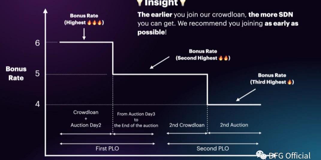 項目介紹:Shiden作為Plasm的先行網,解決了Kusama在運行中遇到的問題:由于Kusama中繼鏈在設計上并不支持智能合約功能,而Shiden作為Kusam上的多虛擬機以及多鏈DApp樞紐,和Plasm一樣,同時支持了以太坊虛擬機和WebAssembly,滿足了Kusama對于智能合約層的需求。Shiden還支持各種應用程序,例如DeFi,NFT等。競拍時間:從第1個插槽開始競拍,贏得插槽后不參與后續競拍。插槽租賃時長:48周。眾貸獎勵規則:總計拿出990萬枚SDN代幣,占到代幣總量的22%,獎勵參與眾貸的用戶。其中20%根據一定的規則分發,2%作為獎金。只有參與眾貸才有額外的紅利。如果直接參加拍賣,將無法獲得獎金。參與得越早,獲得的獎金率就越高。