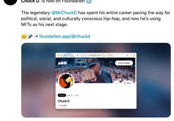 NFT交易平臺Foundation在推特上宣布,美國傳奇說唱團體PublicEnemy創始人ChuckD正式開設Foundation賬號,并已鑄造NFT作品。據悉,PublicEnemy不僅被認為是最成功的嘻哈團體,同時也是最成功的嘻哈藝術家。在滾石雜志和AcclaimedMusic對“全世界中最偉大的藝術家”的評選中都獲得了嘻哈藝術家中的最高排名。