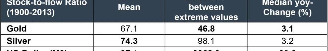 在經濟學中常用SF來衡量商品的稀缺性,由此引申出了兩條公式:①S2F:Stock-to-Flow=stock/flow=商品庫存/商品流通量②1/SF=商品供應量增長率以及所產生的相關定義:①StFR平均值,展示供應量的年增長率的平均高度,平均值越大,越適合充當貨幣②StFR極差,展示了長期以來極端異常值所達到的期望,極差越小,越適合充當貨幣③StFR年增長率的中位數,展示了短期平均波動幅度,中位數越低,越適合充當貨幣在經濟學中,為了量化貨幣的可用性,常會將貨幣與黃金、白銀的SF值進行比較,從而確定合理的價值,如下表所示: