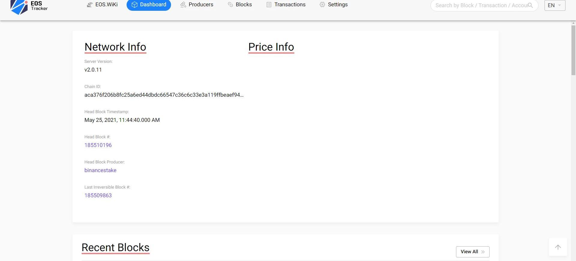EOSTracker瀏覽器主要用來輔助查詢完整交易id以及其他一些交易對應區塊屬性,從而配合在其他區塊瀏覽器進行詳細查詢。