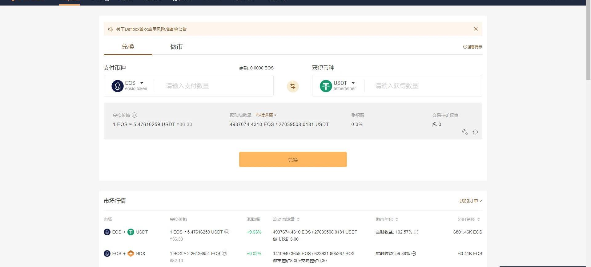圖4DefiBox–EOS鏈今天實驗室從幾大支持智能合約的區塊鏈平臺的區塊鏈瀏覽器入手,帶大家馳騁區塊鏈的海洋。按照智能合約編寫語言分類,本期主要講解支持Solidity語言智能合約與C++語言智能合約的區塊鏈瀏覽器。以太坊系區塊瀏覽器
