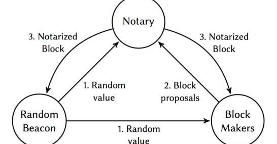 目前有不少團隊使用VRF來生成隨機數對選擇區塊生產者和驗證者進行選擇,每個節點私下利用隨機數和權益秘密抽簽,計算是否達到某個閾值,然后再將節點身份和區塊同時公布,這樣節點就能避免受到攻擊被阻止出塊,因此具有較高級別的安全性。整體方案具備后驗性,但由于其秘密抽簽的性質和每輪投票都更換驗證人,因此需要多級步驟來對區塊達成共識。BLS門限簽名