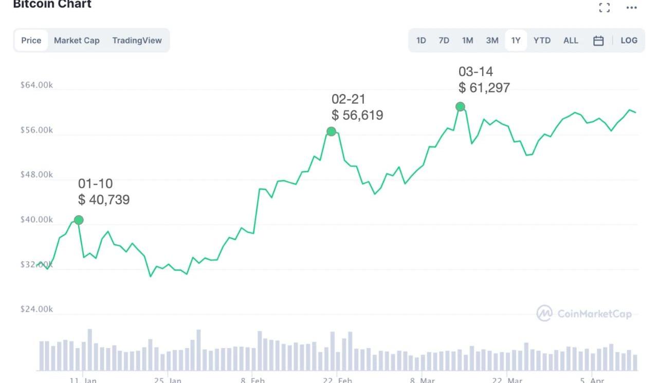 比特幣價格3次達到階段性高點,每一次都突破了前期新高。把時間向前拉長來看,第一個階段性高點的行情起點是11月初的1.3萬美元,這一階段市場情緒的主要推手是以灰度為代表的機構加倉。第二個階段性高點離不開馬斯克的高調喊單,特斯拉宣布斥資15億美元購入比特幣,帶動比特幣市值向萬億美金逼近。第三個當前階段性高點為6.1萬美金,暫無明顯的市場情緒推力。