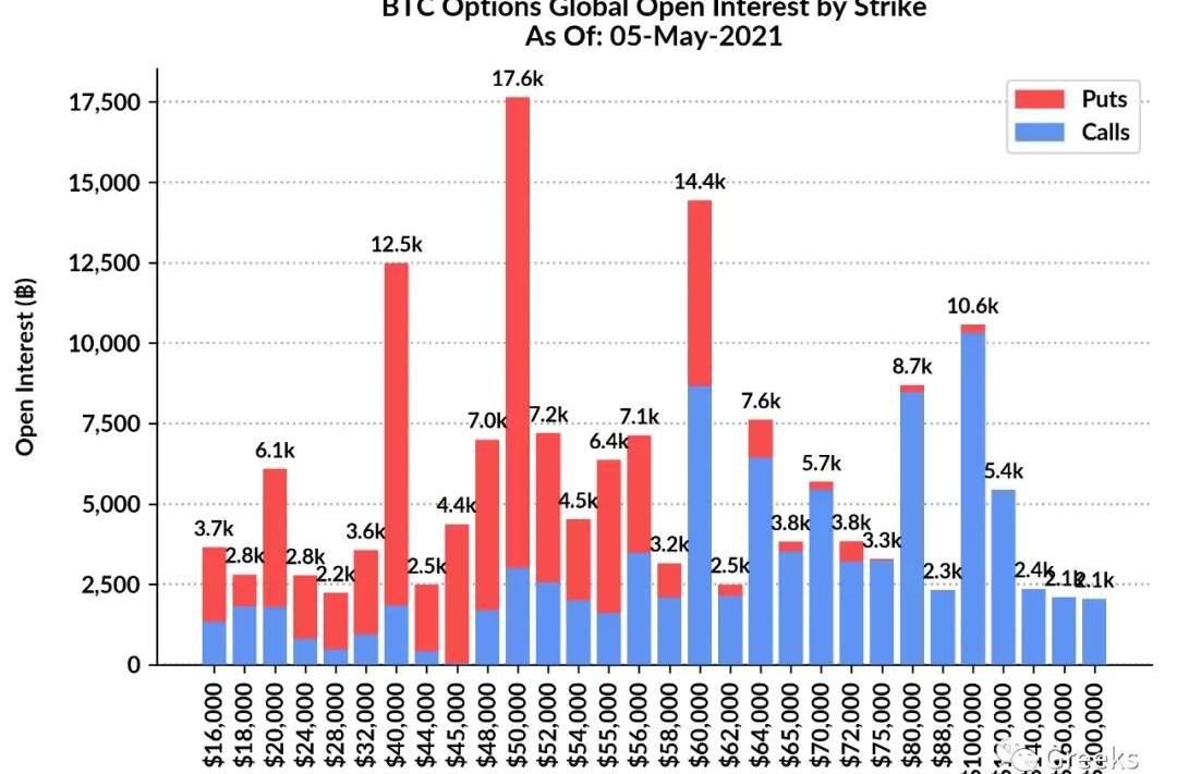 從OptionFlows數據看,看跌期權成交更多,自上一輪下跌開始,比特幣的看漲期權成交一直比較低迷,特別是賣出看漲遠不及以前。大宗交易持續火熱,中短期50000USD附近的看跌期權是目前最熱門的合約,另外淺虛值的看漲期權成交也比較多。