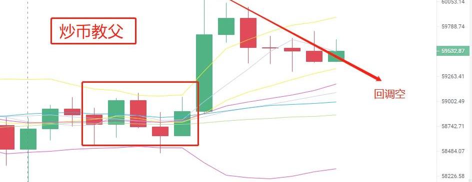 4.2炒幣教父行情策略布局比特幣:小時級別來看,大餅早盤觸底58461.53一線反彈,走出三連陽,突破60000一線關口,遇壓60169.85一線回調,二次插針向上試探遇壓回調,未能企穩60000一線,走出四連陰,目前持續在59000上方震蕩整理,技術面來看,MACD呈多頭排列,逐步縮量,快慢線向上趨勢放緩,KDJ三線窄幅平行進入了調整,有向下發散的現象,短期來看,預計大餅有回踩支撐的需求,建議反彈空單先看回踩。操作建議:59500-60000附近分批空,目標58500-58000,防守60500,