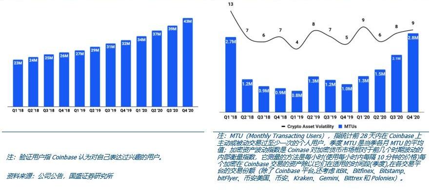 XRP/HKD-3.09%編者按:本文來自吉時通信,Odaily星球日報經授權轉載。2月25日,加密資產交易所Coinbase公布S-1文件,其A類股將在納斯達克全球精選市場直接上市,代碼為“COIN”。作為加密貨幣行業里程碑式的事件,本報告討論了交易所商業模式和Coinbase的優勢、挑戰。Coinbase將成為第一個登陸“傳統”資本市場的加密資產交易所。我們認為,Coinbase上市是2019年比特幣礦機公司嘉楠科技上市后,加密資產史上又一里程碑和新起點,是2萬億美元加密資產行業蓬勃發展的最新注腳,將推動加密資產世界與“傳統”世界的進一步融合。加密貨幣交易所是什么?——證交所+券商+SEC+銀行+期貨公司+創投。與“傳統”證交所相似,加密資產交易所主要功能是撮合交易,但提供的服務更多樣,角色更豐富。例如,幣安、火幣、OKEx三大頭部交易所提供存貸款、托管、衍生品交易等服務,承擔了傳統證券市場中銀行、證券公司、期貨公司等角色,還提供承攬承銷、挖礦等加密資產世界的特有服務。除此之外,近年來去中心化交易所迅猛發展,用智能合約搭建了自動做市商策略,以交易為核心,將更多的金融行為映射到加密貨幣世界,進一步構筑DeFi生態。Coinbase累計促成4560億美元交易,托管900億美元加密資產。成立至今,Coinbase直接集成了超過15個區塊鏈協議,支持超過90個用于交易或托管的加密資產,擁有4300萬零售用戶和7000機構用戶;Coinbase累計交易規模為4560億美元。其中,2020年Coinbase加密資產交易量為1930億美元,同比增長142%。其中,BTC、ETH和其他加密資產在Coinbase整體交易量中的占比分別是41%、15%、44%。截至2020年12月31日,Coinbase代表客戶持有的法定貨幣與加密資產總價值為903億美元,較2019年增長432%,其中加密資產總價值868億美元,占加密市場總市值11%。2020年營收13億美元,凈利潤3.2億美元,交易費為主,毛利率約85%。從成立到2020年12月31日,公司總收入超過34億美元,其中,2020年,交易費占凈收入的96%以上。2020年和2019年,公司總收入分別為13億美元和5.3億美元,凈利潤分別為3.2億美元和-3040萬美元,調整后的EBITDA分別為5.3億美元和2430萬美元。公司營業收入結構較為穩定,2019Q1~2020Q4營收中的81~92%來自交易業務,2~7%來自訂閱和服務費,4~15%來自其他業務。其中,交易業務收入規模與比特幣和加密資產行情正相關。另外,交易業務的毛利率穩中有升,2020年均在85%以上。未來規劃:提高加密資產對傳統世界的滲透率,布局DeFi項目,應對去中心化交易所挑戰。Coinbase最大的優勢在于合規化,其擁有紐約州BitLicense和有限目的信托牌照,在美國多個州擁有MSB牌照,還擁有英國與愛爾蘭央行的電子貨幣服務牌照,提供法幣入金和幣幣交易服務。但相比于幣安、火幣、OKEx等交易所而言堪稱“保守”,未發行平臺幣、無IEO、無礦池業務,。除了面對上述中心化交易所的激烈競爭,2020年以來,Coinbase還要應對Uniswap、Curve等去中心化交易所的崛起。它們交易透明、開源、無需用戶托管資產,獲得了相當一部分社區用戶的青睞。其中,Uniswap2018年上線,代幣流通市值已超170億美元。為此,Coinbase也布局了Compound等諸多DeFi項目,后勢可期。風險提示:幣價波動,監管收緊。