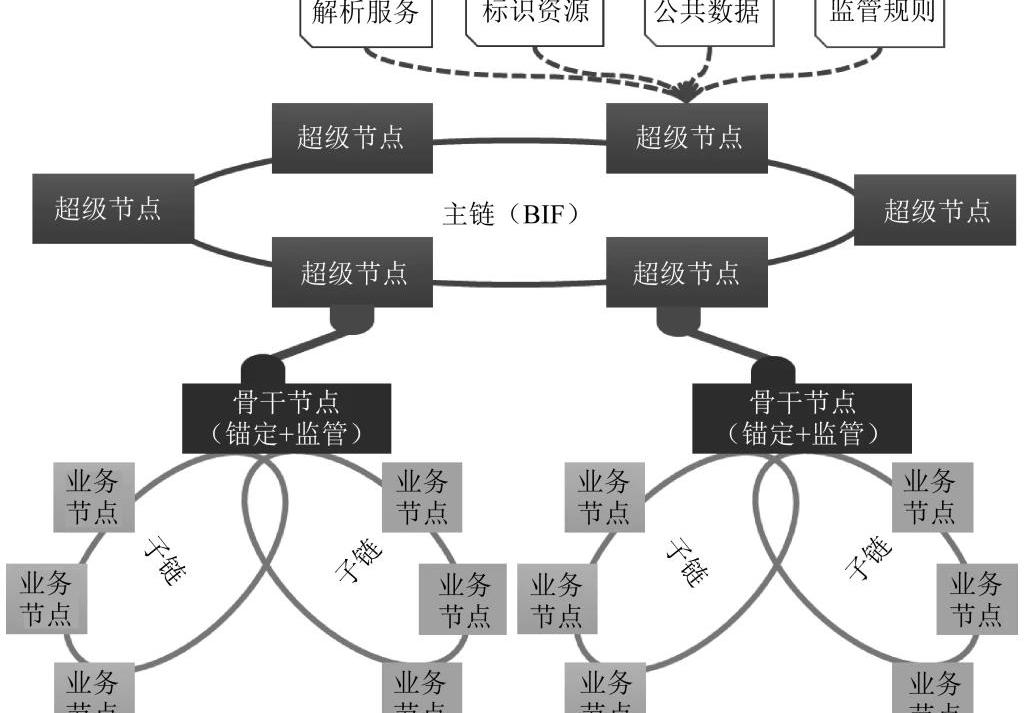 圖1星火鏈主子鏈群架構主鏈功能主鏈通過注入核心資產,包括公共數據、標識資源、標識解析和監管規則等對外提供基礎服務;從國家層面構建互通能力,以及“穿透式”監管手段,為保障鏈群高效運行和整個鏈群生態的穩定健康發展保駕護航。子鏈功能子鏈主要針對不同業務場景獨立設計,充分發揮產業優勢和區塊鏈現有基礎,促進區塊鏈在更多場景、更大規模實現累積式發展。根據業務場景的不同,子鏈支持其具體的個性化業務活動,并支持其獨立執行共識,實現數據安全隔離、高性能運行。3.2.2星火鏈關鍵技術交易。星火鏈的交易類型分為普通鏈上交易、普通合約交易、系統合約交易3種。星火鏈支持配置緩存交易優先級,并支持并發交易操作和隱私交易功能。共識。星火鏈共識算法結合區塊鏈和商業應用需求,在委托權益證明算法、可驗證隨機函數、實用拜占庭算法等基礎上進行算法創新,設計出了適用于許可公有區塊鏈的創新雙層共識算法。星火子鏈可以根據實際情況和場景需要選擇替換共識算法,子鏈也可以部署主鏈的共識算法,當子鏈出現故障時,可委托主鏈進行共識。存儲。鏈網協同新基礎設施支持數據鏈上鏈下分布式存儲功能,實現了主子鏈數據隔離和跨平臺并行數據讀寫支持等功能。網絡。星火鏈采用分層的分布式哈希表技術實現P2P網絡的路由尋址。通過該技術,可以在無中心服務器的情況下,在網絡中快速找到目標節點。分層架構可以支持鏈網協同新基礎設施管理策略的靈活部署,保證可擴展性;最后,通過骨干節點連通主子鏈網絡,保證跨鏈服務的有效性。跨鏈協議。區塊鏈技術在快速發展的過程中出現了種類繁多的鏈:公有鏈、聯盟鏈、私有鏈,它們具有不同的技術特點,可應用于不同的業務場景。公有鏈建立了廣泛透明和統一共識的網絡,而聯盟鏈和私有鏈讓不同機構組織擁有各自的區塊鏈網絡。這些網絡彼此隔離,像一座座獨立的價值孤島,導致許多業務場景諸如身份驗證、資產數字化、合規等,它們的資產和數據無法在不同區塊鏈之間進行轉移、交換和互操作。隨著業務的發展,跨鏈的需求會隨處可見。為了打破區塊鏈之間的價值隔離困境,安全實現鏈與鏈之間的價值互通,星火鏈提出了中繼模式+可插拔組件的靈活跨鏈方式實現不同業務場景的跨鏈過程。分布式應用支持。為分布式應用提供EVM、JVM、WASM等多種虛擬機支持,并且實現了虛擬機的智能可插拔,方便第三方應用開發。內置高精度時鐘服務。在星火鏈中,數據區塊同步依賴于時鐘的一致性和精確性。星火鏈的時間從國家授時中心獲取,同時支持北斗授時。星火鏈中的超級節點會承擔起“時間服務器”的任務,所有接入鏈網協同新基礎設施的節點都會從“時間服務器”獲取標準時間,不需要與系統外的時鐘同步。所有星火鏈上的驗證節點,在打包驗證區塊前,都會從超級節點處獲取時間,進行時間同步。此外,節點可以手工或定時的方式與超級節點同步系統時間,使節點的時鐘和超級節點源服務器保持一致。節點時鐘同步的時間誤差和超級節點時鐘源服務器之間的誤差保持在毫秒級。4星火標識