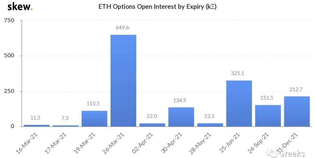以太坊目前3月期限大約是64.9萬ETH,6月期限大約是32.5萬ETH。