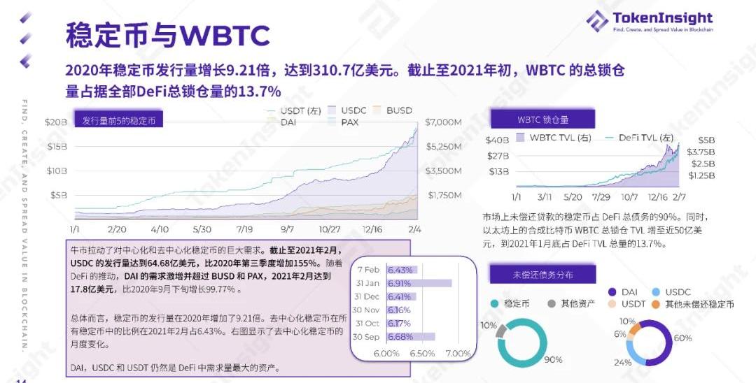 2020是卓越不凡的一年,也是災難重重的一年。新冠肺炎給全球經濟和人類生活帶來了深遠的負面影響。3月12日的大跌使市場失去信心,但隨之而來的DeFi的崛起引爆了整個盛夏。Compound流動性挖礦點燃了市場的激情,也催生了許多高收益的挖礦項目。但是高收益明顯無法持續,在八月底,“夏天“結束了。市場總是瞬息萬變的。SushiSwap抄襲了Uniswap的方案,并且發了自己的token,流動性大量被吸引到Sushiswap上。而Uniswap通過空投活動重新搶回了屬于自己的市場份額。同時大量AMM的DEX出現試圖解決無常損失與滑點的問題。除了現貨交易的DEX以外,借貸類項目又開始重新爆發,AAVE作為老大,年底TVL迅速增加,Token的價格也是屢破新高。DeFi的魅力在于其無需許可性、多樣性、兼容性和可組合性。作為基礎設施:DEX和借貸在不斷更新換代。頂層的應用也因此有了健康的發展土壤。DeFi發展的唯一邊界是你的想象。我們看到有許多的聚合器類項目爆發,鏈上衍生品也逐漸的擴大至規模化。現在你已經可以在DeFi生態內對沖風險。由于TVL占首位的借貸協議僅支持浮動借貸利率,固定利率類的創新在2020年下半年涌現。這類項目主要為支持固定利率借貸和支持固定利率收益。非超額抵押借貸的探索也在進行中。投資產品正在變得更加多樣化,而不僅僅是高收益高風險,但這類的產品仍處于相對早期的階段。雖然算法穩定幣的實驗早在DeFi爆發之前就開始了,但它們從未像在2020年四季度和2021年一季度一樣吸引眼球。這些資產被廣泛認為是危險的,尤其是那些完全沒有任何抵押物支撐的token。但我們仍然應該抱著開放的興奮的態度看待DeFi領域的各種嘗試。隨著以太坊擁堵的加重,網絡效率問題亟待解決,Layer-2協議的重要性日劇凸顯,它們被不斷整合進各種DeFi項目中。同時其它數據服務和工具類的基礎設施也受到市場歡迎。在以太坊DeFi擴張的同時,其它公鏈上DeFi的建設也在如火如荼地進行著。其中坐擁用戶流量和資金的中心化交易所具有天然的優勢,在短時間內啟動了公鏈并吸引了不少的項目。然而,雖然中心化交易所公鏈的手續費要比以太坊低很多,它們的整體生態還是無法和以太坊抗衡。BSC和波卡是以太坊外的兩條發展亮眼的公鏈。由于有Binance的支持,BSC對想成為“早起鳥兒”的項目有著天然吸引力。而波卡有著眾多的信徒,生態也一直在不斷地建設當中。EIP-1559協議將可能解決高手續費問題并使手續費可預測,但同時對礦工的利益也是一種損害,gaslimit的提升對網絡安全也有一定威脅。但是,它仍然是一種保護以太坊用戶和HODLers的極好的方案。隨著以太坊作為基準費率銷毀,以太坊的價格也將上漲。